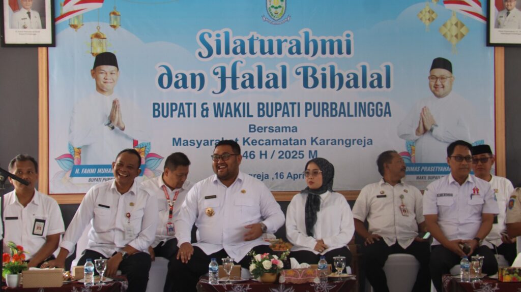 PURBALINGGA INFO– Pemerintah Kabupaten Purbalingga menyelenggarakan acara Silaturahmi dan Halal Bihalal Bupati dan Wakil Bupati Purbalingga bersama masyarakat yang digelar di Pendopo Kecamatan Karangreja, Rabu pagi (16/4/25). Acara tersebut dihadiri oleh Wakil Bupati Purbalingga Dimas Prasetyahani, Anggota DPR RI Dapil VII Rofik Hananto, Wakil Ketua TP PKK Denita Dimas Prasetyahani, serta para kepala OPD di lingkungan Pemkab Purbalingga.
